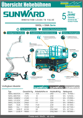 | Modell | Gewicht Kg | Arbeitshöhe m | Bühnenhöhe m | Hubkraft KG | Antrieb | Technische Daten |